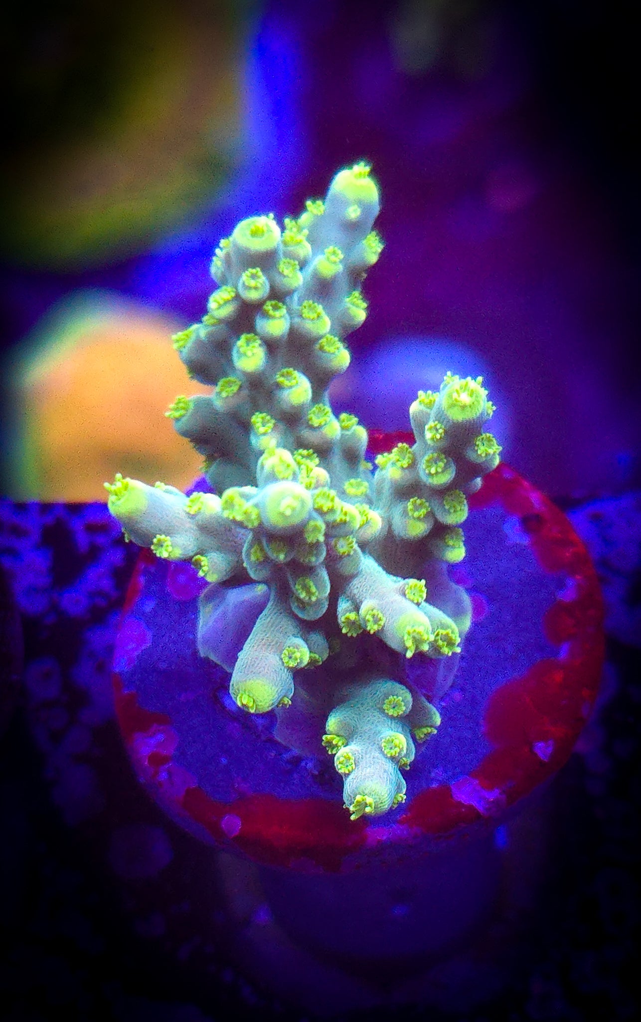 Acropora coral are small polyp stony (SPS) coral belonging to the Acroporidae family.  There are almost 150 varieties and they come in various forms, including plating and branching.  Acropora are considered difficult coral to keep as they require the right tank conditions and that those conditions remain stable to do well.