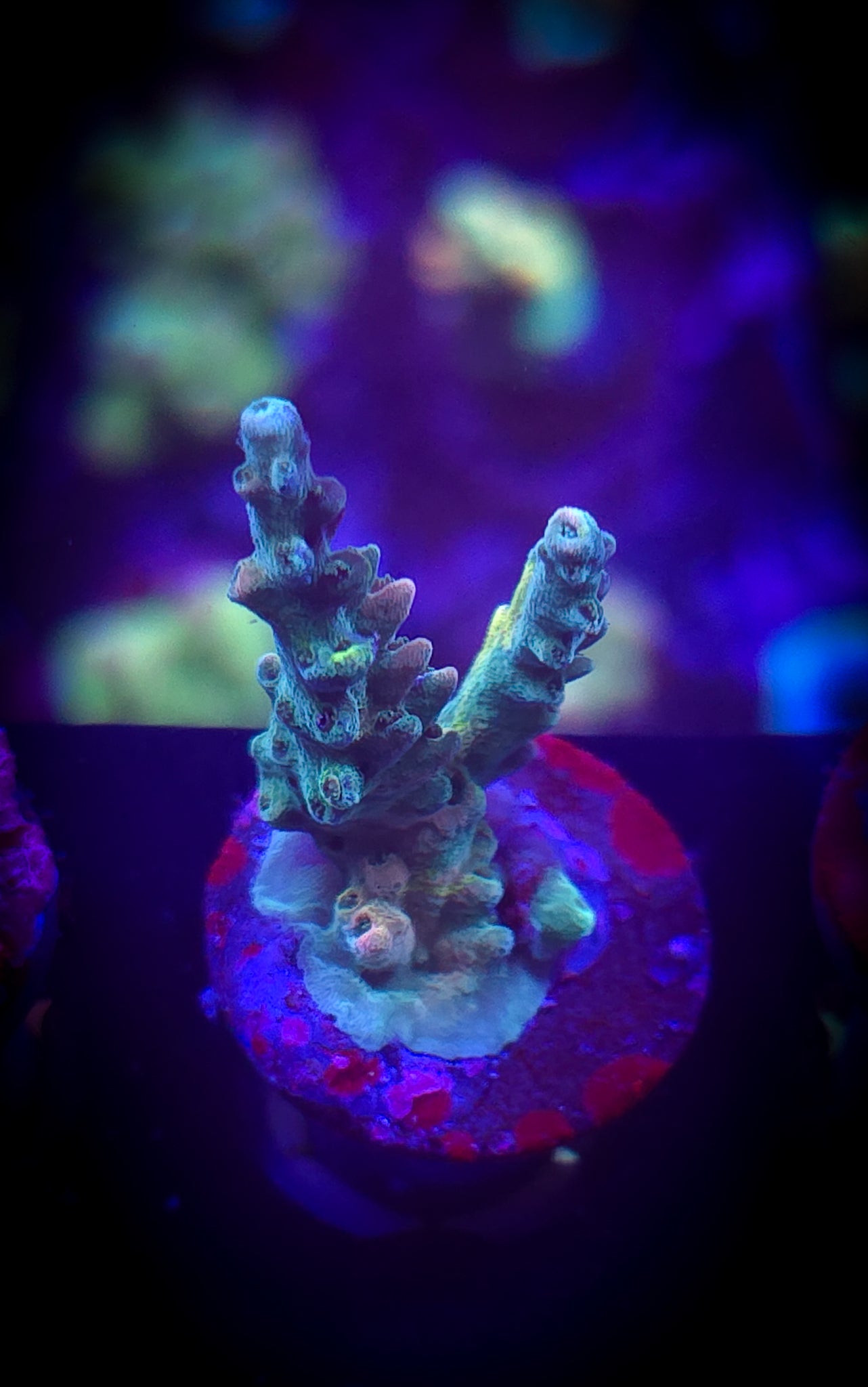 Acropora coral are small polyp stony (SPS) coral belonging to the Acroporidae family.  There are almost 150 varieties and they come in various forms, including plating and branching.  Acropora are considered difficult coral to keep as they require the right tank conditions and that those conditions remain stable to do well.