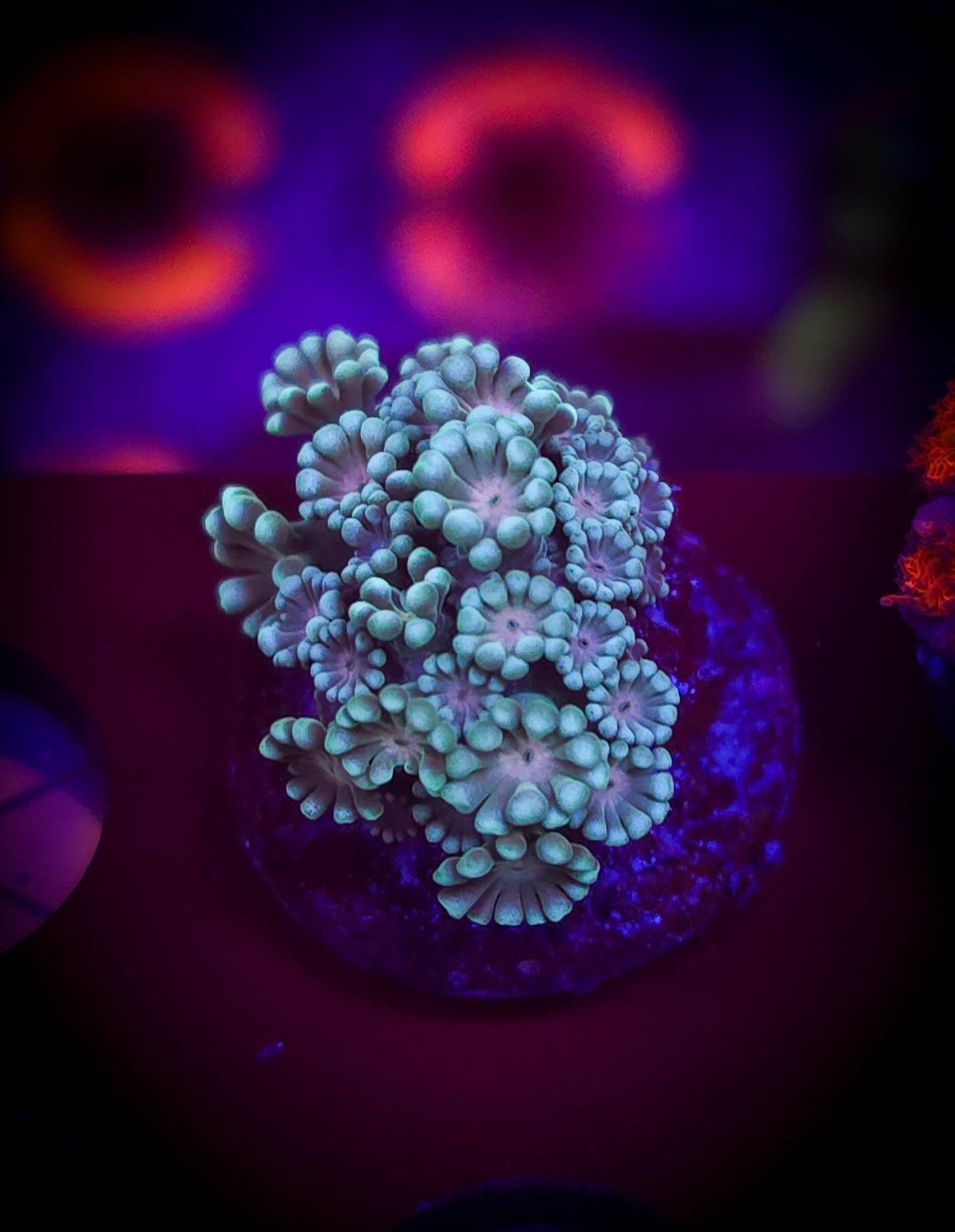 Although Goniopora do well in a relatively wide range of lighting, use of 100 – 150 par is usually recommended.  Lower to moderate indirect water flow is best.