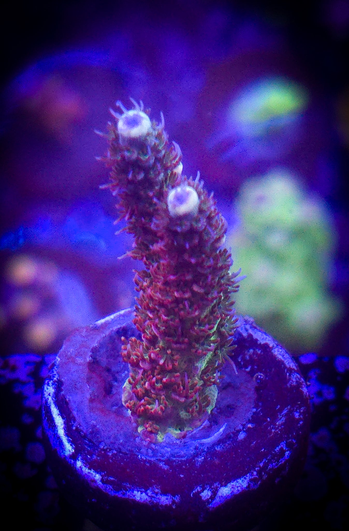 Acropora coral are small polyp stony (SPS) coral belonging to the Acroporidae family.  There are almost 150 varieties and they come in various forms, including plating and branching.  Acropora are considered difficult coral to keep as they require the right tank conditions and that those conditions remain stable to do well.