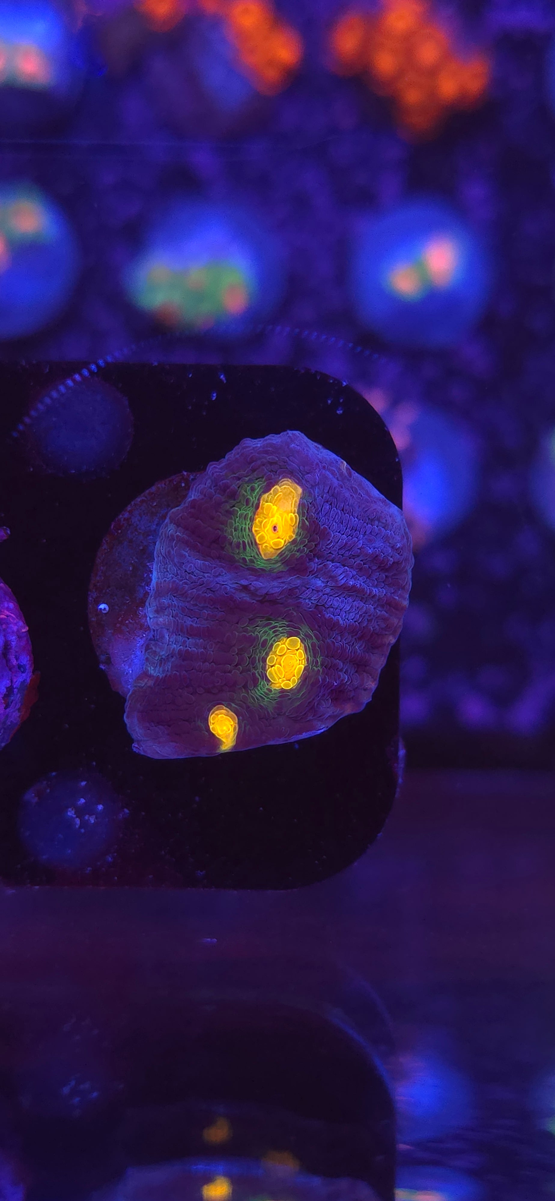 Chalice form plates and comprise a wide range of corals including Echinopora, Oxypora, and Mycedium. Chalice are large polyp stony corals (LPS). What attracts many hobbyist to Chalice are their wide range of colors and patterns. They vary from one basic color to brilliant art pieces with many colors that can appear fluorescent and iridescent.