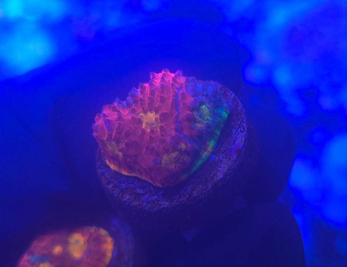 Chalice form plates and comprise a wide range of corals including Echinopora, Oxypora, and Mycedium. Chalice are large polyp stony corals (LPS). What attracts many hobbyist to Chalice are their wide range of colors and patterns. They vary from one basic color to brilliant art pieces with many colors that can appear fluorescent and iridescent.