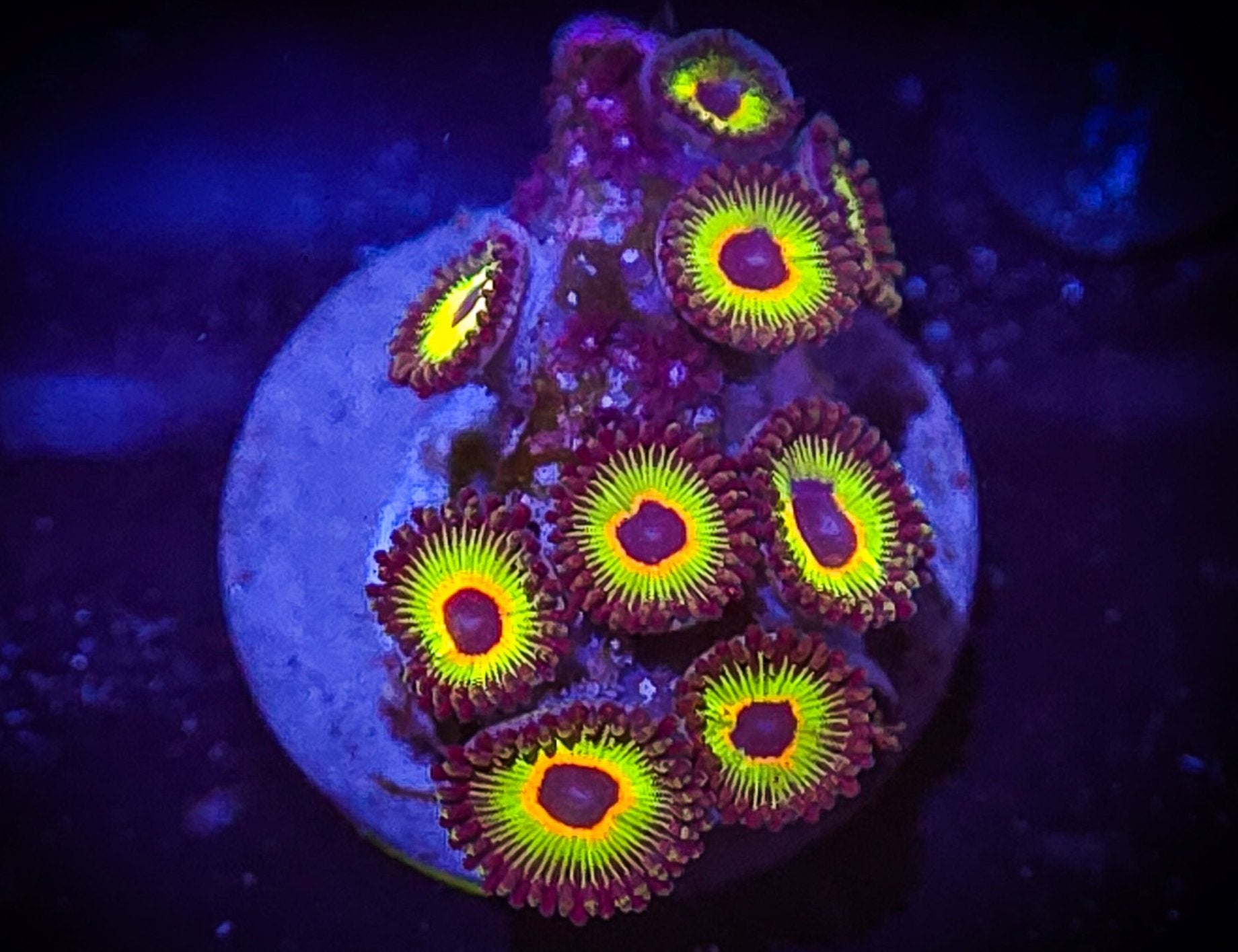Location: Place Zoas in an area of the aquarium that receives enough light and water flow, often near the middle (to lower part) of the tank. Zoas can tolerate both high and low light conditions, but too much light can cause them to bleach and lose color, while too little light can cause them to brown out and stretch.